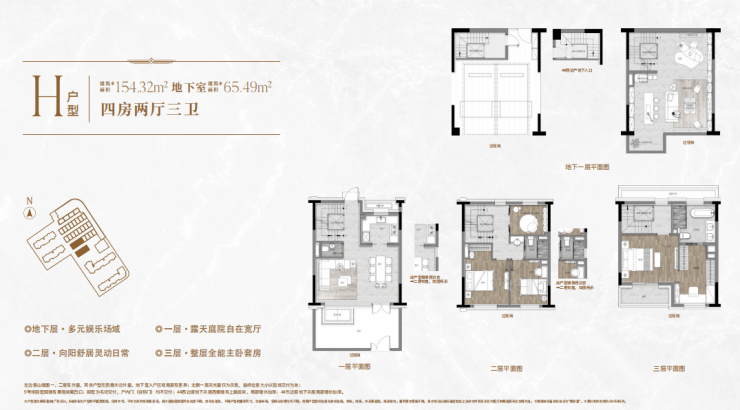 享四层立体空间(地上三层+地下一层)