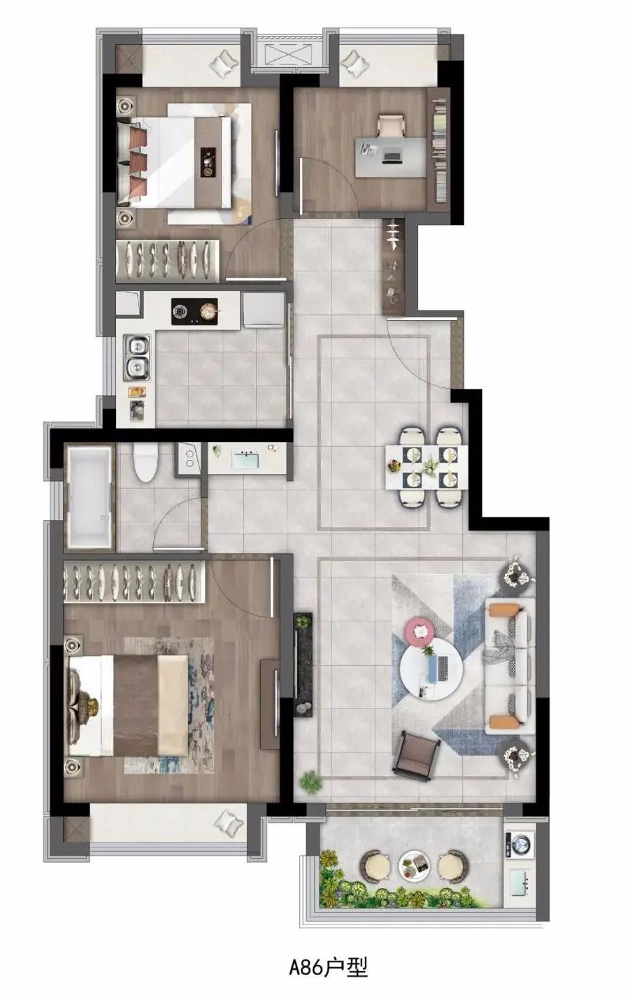 未来仍有2个主力户型等待入市,分别为:建面约86㎡3房2厅1卫;建面约135㎡4房2厅2卫。