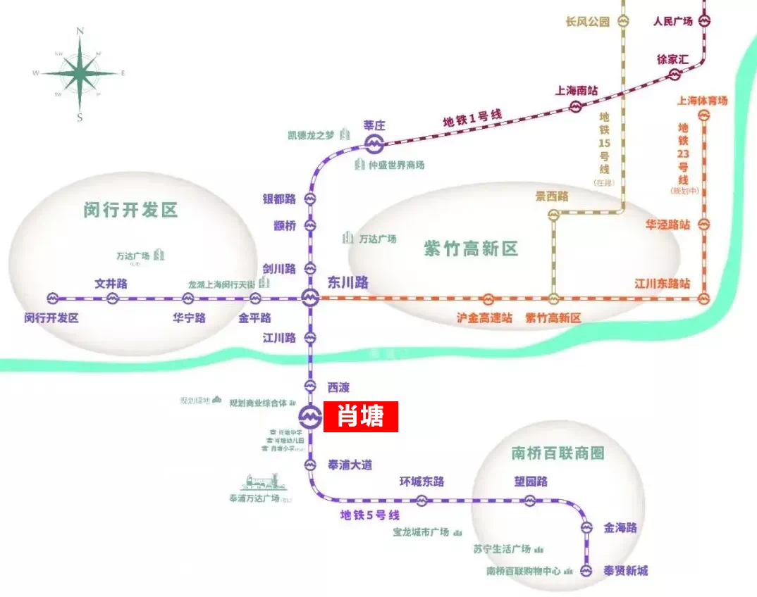 整个项目其实紧贴着5号线萧塘站,出小区就是地铁口,享受到地铁上盖的便利交通,2站即达闵行区。