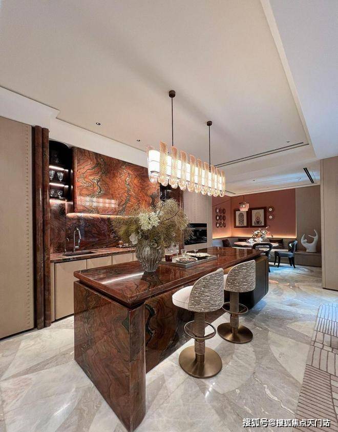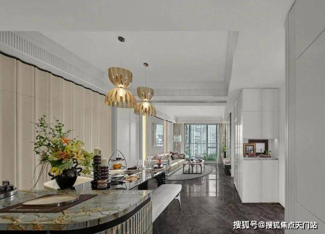一层藏奢于境,入户门厅,阔绰横厅场域,生活从容尽显