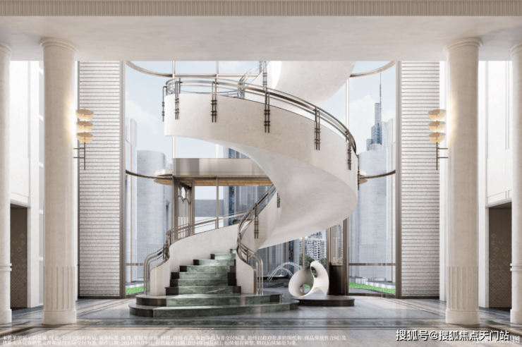 基座更是采用 大面积石材搭配 艺术玻璃及 古铜色金属窗框,辅以奢石、艺术等点缀,从上到下,处处皆是奢华质感。