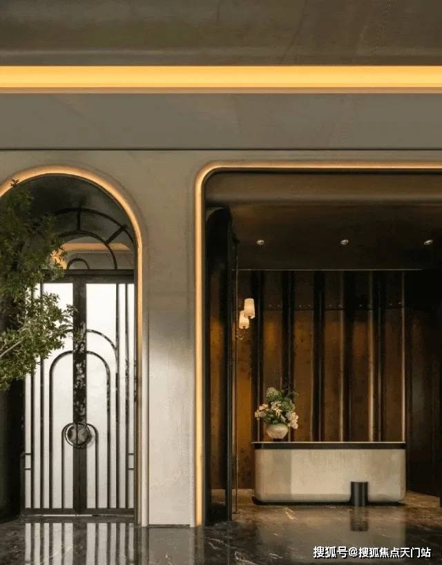 门厅,作为建筑空间的第一重呼吸,在摩登且包容的主基调上,汲取 西方古典园林的轴线秩序感,同时在细节处融入了东方留白的智慧,并以黄金比例分割的线条韵律与考究材质的肌理对话,让这个过渡空间成为兼具当代美学精神与人文温度的仪式场域,让居者于此处完成从外部世界到内心居所的优雅转译。