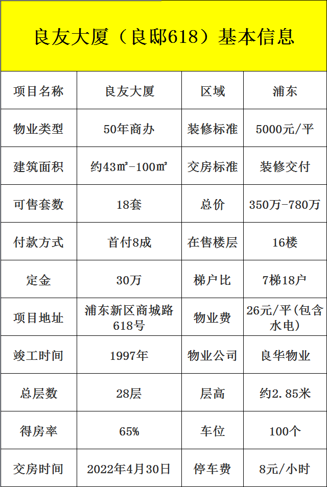 据网友爆料!陆家嘴排名前列八佰伴旁良友大厦(良邸618),流出18套不限购公寓,总价3字头起拥内环内品质不动产,投资,自住皆宜。