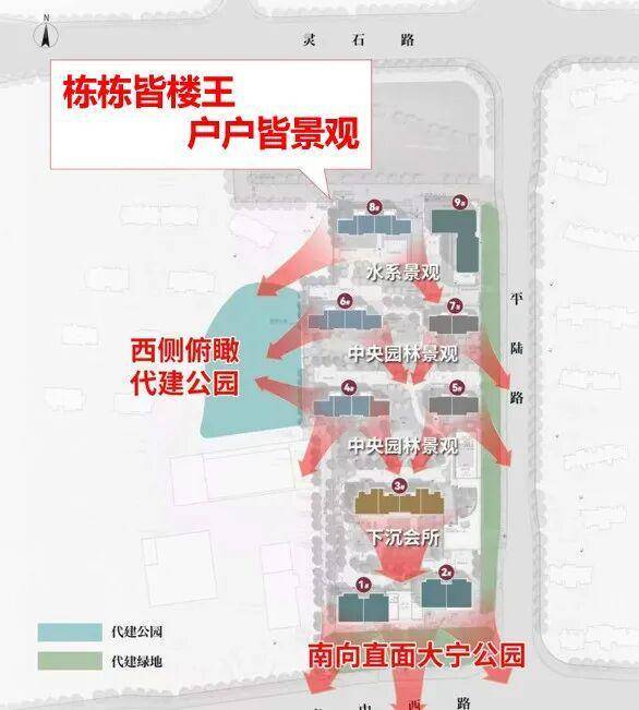 从规划图来看,项目前排可直面大宁灵石公园无敌景观;而办公部分设置在地块东北侧,也有隔断进行出入口区分,对住宅部分来说几乎没有影响。