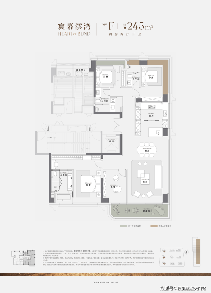 245㎡四房两厅两卫,江景+园景双面盛景,约17m边厅视野+独权主卧,南向浴缸体验极致享受。