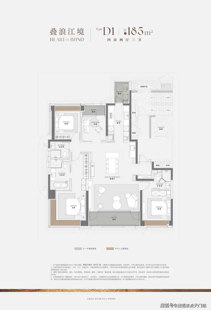 226㎡四房两厅四卫,三卧室南向排布,主卧270°转角无柱直面江景,蝴蝶户型布局,最大程度释放了侧面的采光及观景能力,楼下的园区景观谁看谁沦陷!