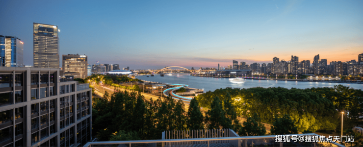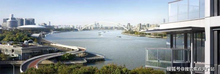 景观设计方面,保利世博天悦采用 引江入园、以水带路的手法,将滨江舒阔的国际生活平移到社区内,打造约 6万㎡景观秘境,媲美全球奢华酒店。采用大面积的留白和现代禅意的表现手法,呈现开阔舒展的质感。