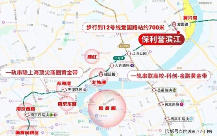 从项目步行到12号线爱国路站(数据来源:百度地图)约700米,这是一条串联上海顶尖商圈的价值金线—— 直达大连路总部集群、北外滩、苏河湾、南京西路、衡复风貌区等节点,换乘几站也能快速抵达陆家嘴。