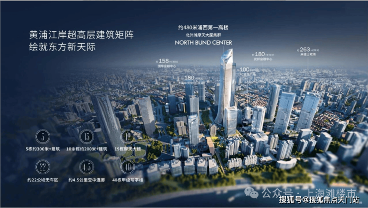 此外,北外滩区域还规划了1栋380米建筑,2栋300-320米建筑,9栋200-265米的超高建筑。