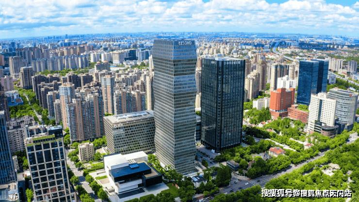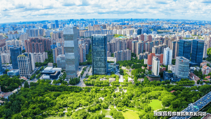 古北街区整体绿化率高达约40%,从空中视角俯瞰古北,是规整的规划布局以及绿树成荫的街区环境,整洁而静谧,无论是住宅还是商办楼宇,都是按照国际化高标准打造的,维护得都非常好。