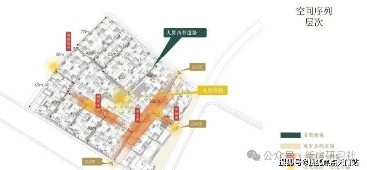 士林润园社区规划可分为蓬莱路城市公共景观以及社区内部景观两个部分,其中市政绿地衔接于上海2035城市总体规划中“蓝绿丝带”的上位条件要求,社区内部街巷空间形成空间序列形成递进的层次,将归家体验的序列依次展开,形成城市街道→入口(一级门户)→街巷→节点空间→里弄门(二级门户)→合院入户(三级门户)的方式,基本可保证大多数住户可体验到两重以上的空间递进。