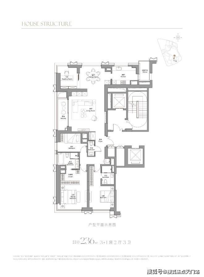236㎡4房:总价约3580-3750万