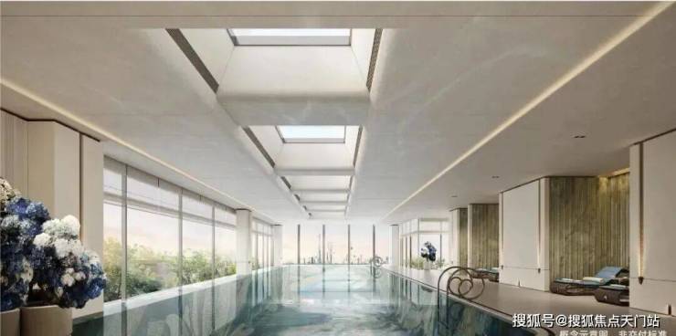 这种 “把最好的空间留给阳光与风景” 的设计,弥足珍贵!更值得关注的是,会所内的悬浮泳池堪称顶豪场景的 “神来之笔”!它并非简单的 “空中泳池”,而是与北外滩的城市地标深度共鸣!
