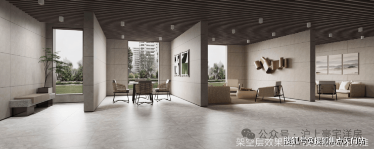 架空层将邻里及志趣的空间延伸至业主公共生活空间,有儿童亲子、茶棋娱乐、休闲运动等将满足全龄家庭的不同使用社交场景。