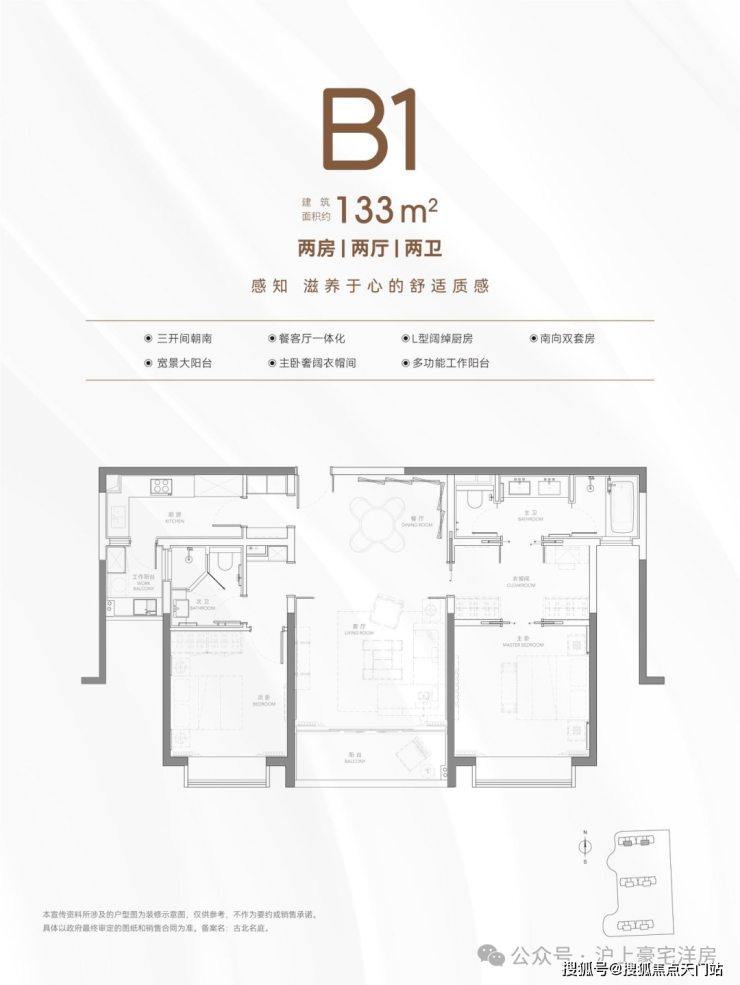 面积约25㎡主卧套房:配备南向观景飘窗、独立卫浴及收纳衣柜,静谧悦己之地,私享丰盛逸趣