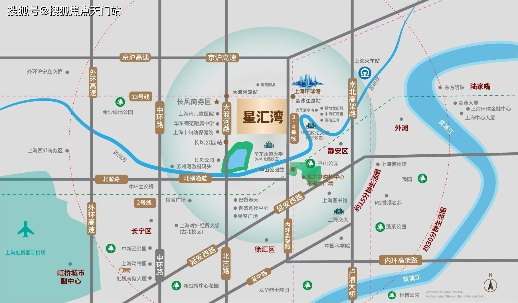 内环旁、五轨交汇;3号、4号、13号线金沙江路站、2号线中山公园站、15号线长风公园站