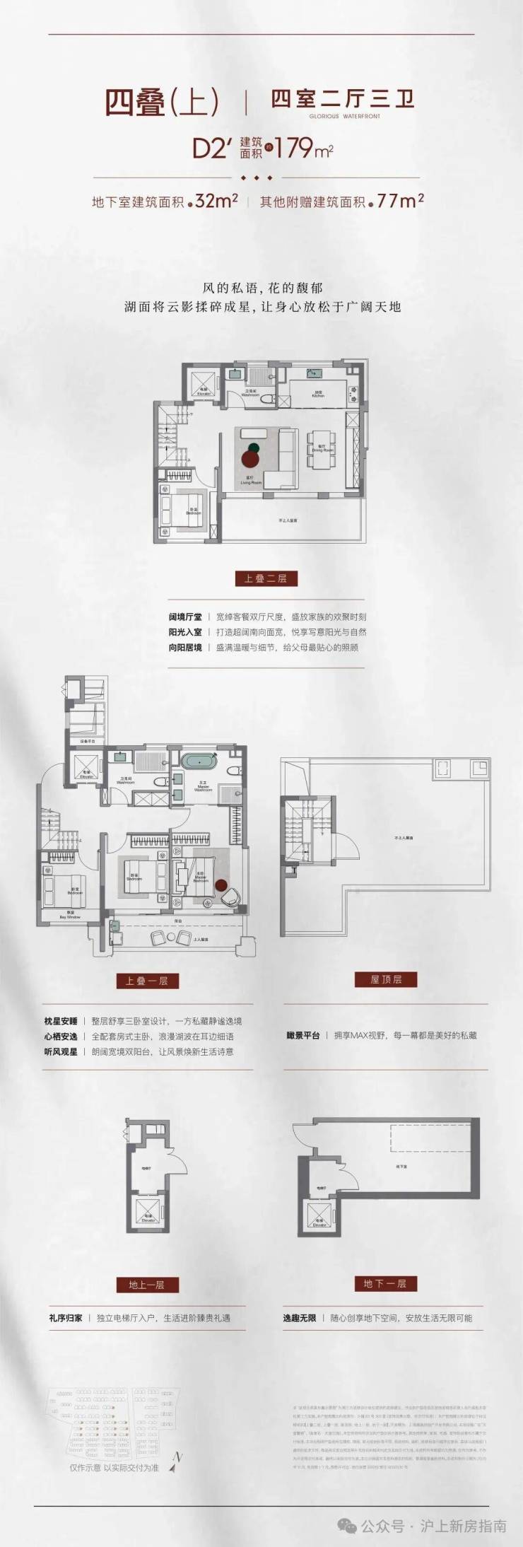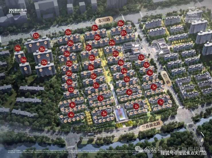 洋房分布在东西两侧,东侧洋房可俯瞰黄浦江江景及滨水绿地,西侧洋房可览兰香湖湖景。