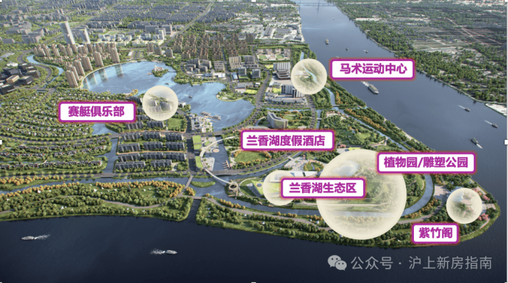 地块所在的紫竹区域占据浦江上游第一湾独特地理位置,核心区域有闵行第一大湖兰香湖,水域面积广阔,岸线绵延,湖光潋滟。