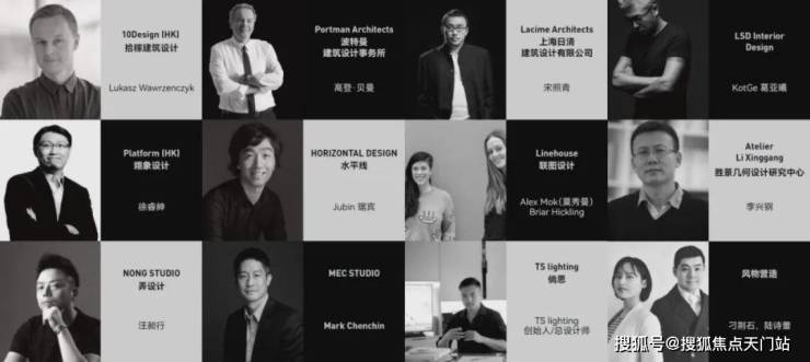 包括外滩华尔道夫酒店的缔造者波特曼建筑设计事务所、来自中国香港的先锋设计机构10Design和Platform,参与设计上海新天地的日清建筑设计,擅长室内空间设计的LSD Interior Design、水平线、Linehouse、NONG STUDIO以及设计外滩建筑群灯光照明的TS lighting等。