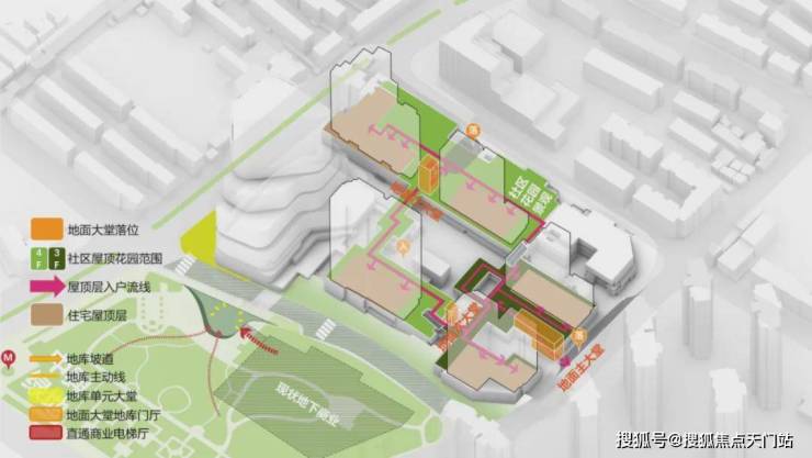 业主可通过任意一个归家入口,就近抵达住宅平台后,通过高线公园步行至住处所在楼栋。