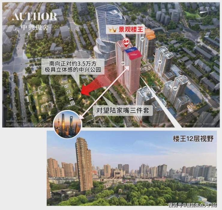 中興傲舍即将加推建筑面积约338/355平楼王,这楼栋南向无遮挡,直面约3.5万方中兴公园,对望陆家嘴三件套。