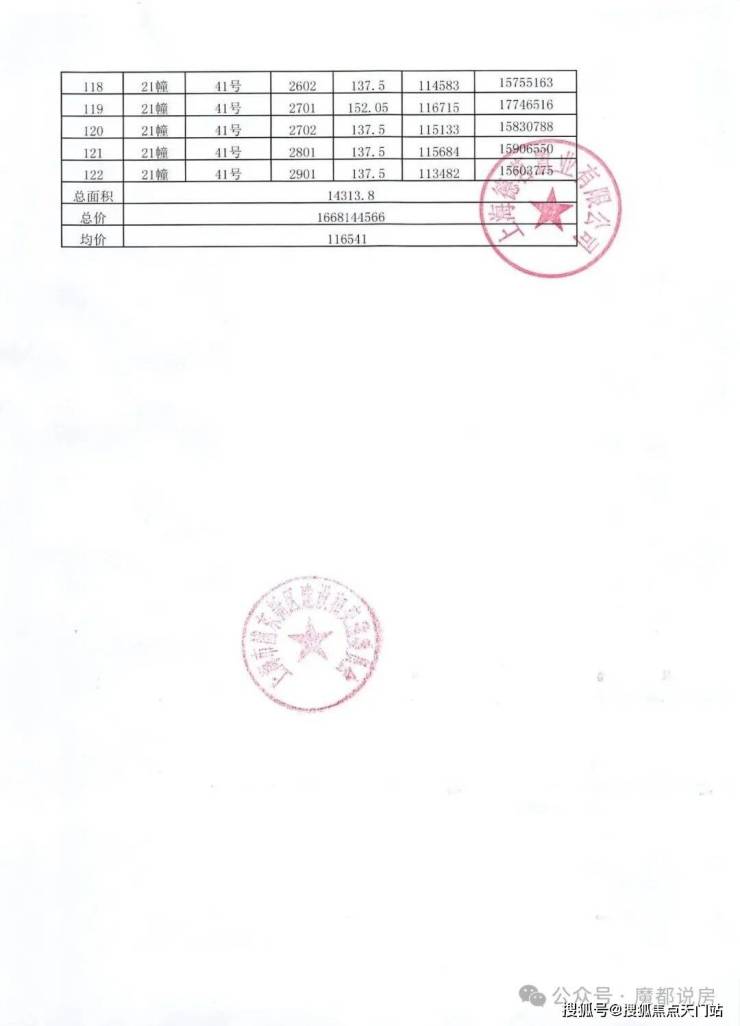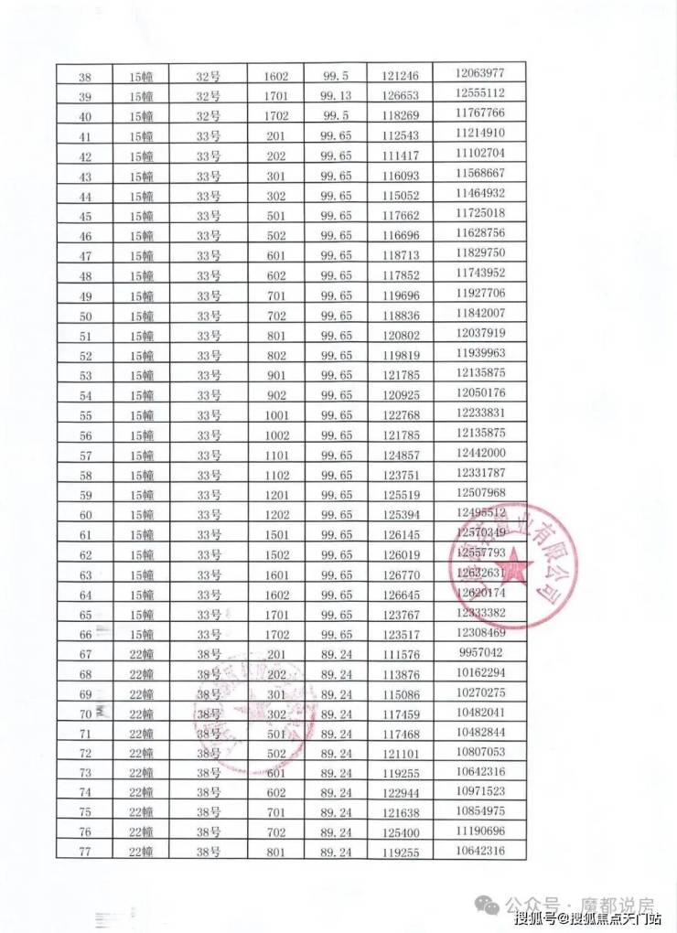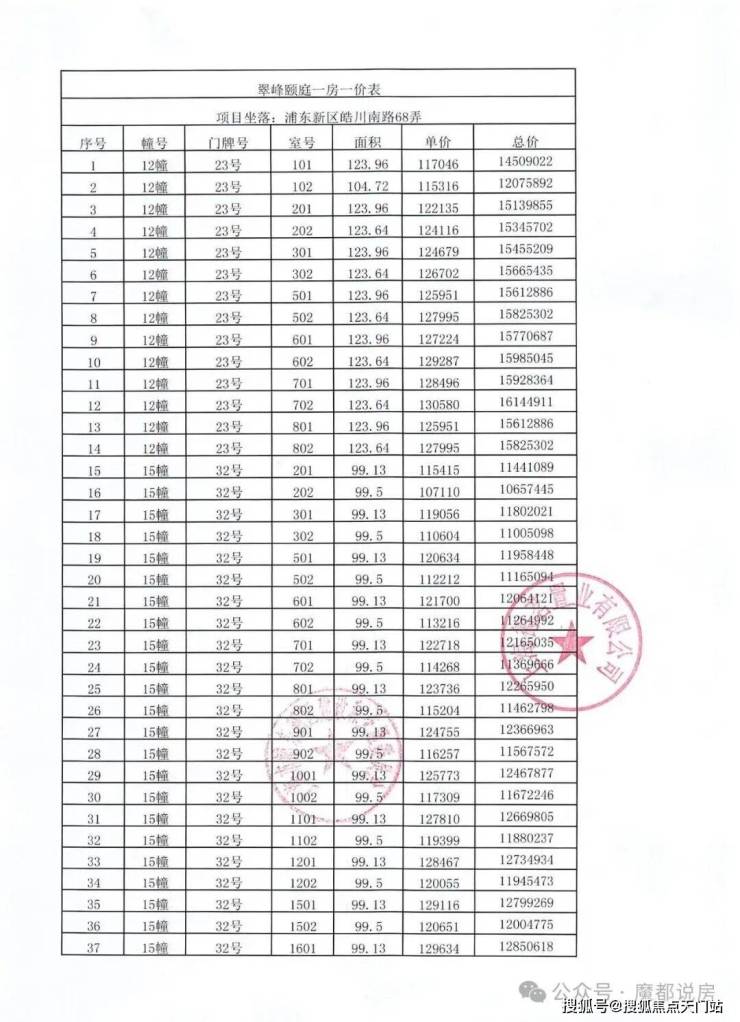 一房一价表: