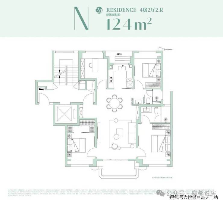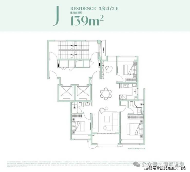 约153㎡户型设计:极致观景,西瞰江景,东瞰园景!4房功能齐备!