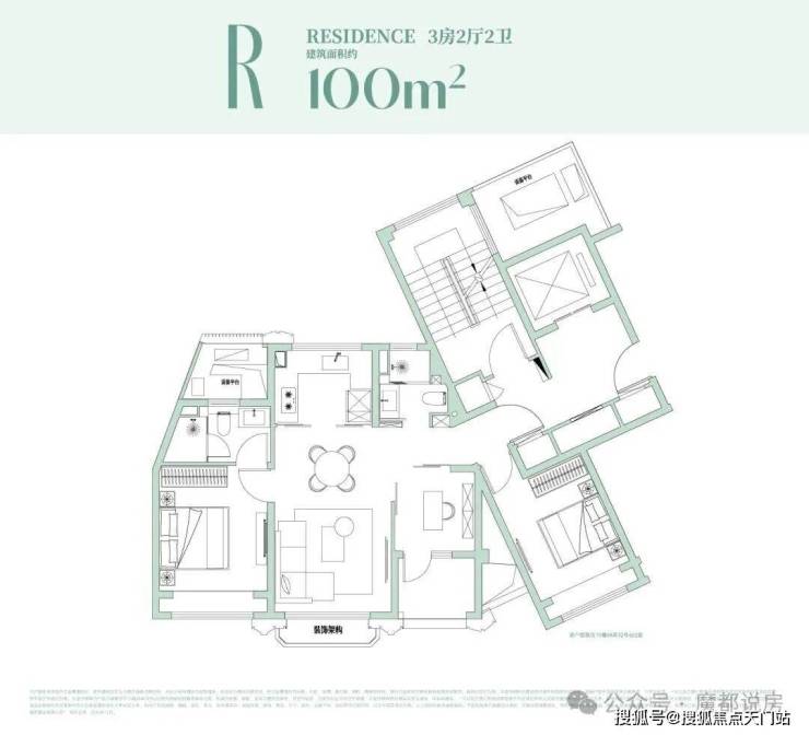 约99㎡户型设计:经典飞机户型格局!独立观景阳台!