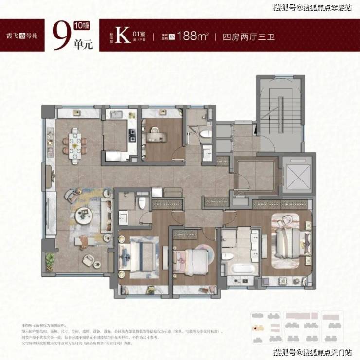 户型方面,项目将推出建面约98-122㎡3房及141-188㎡4房。