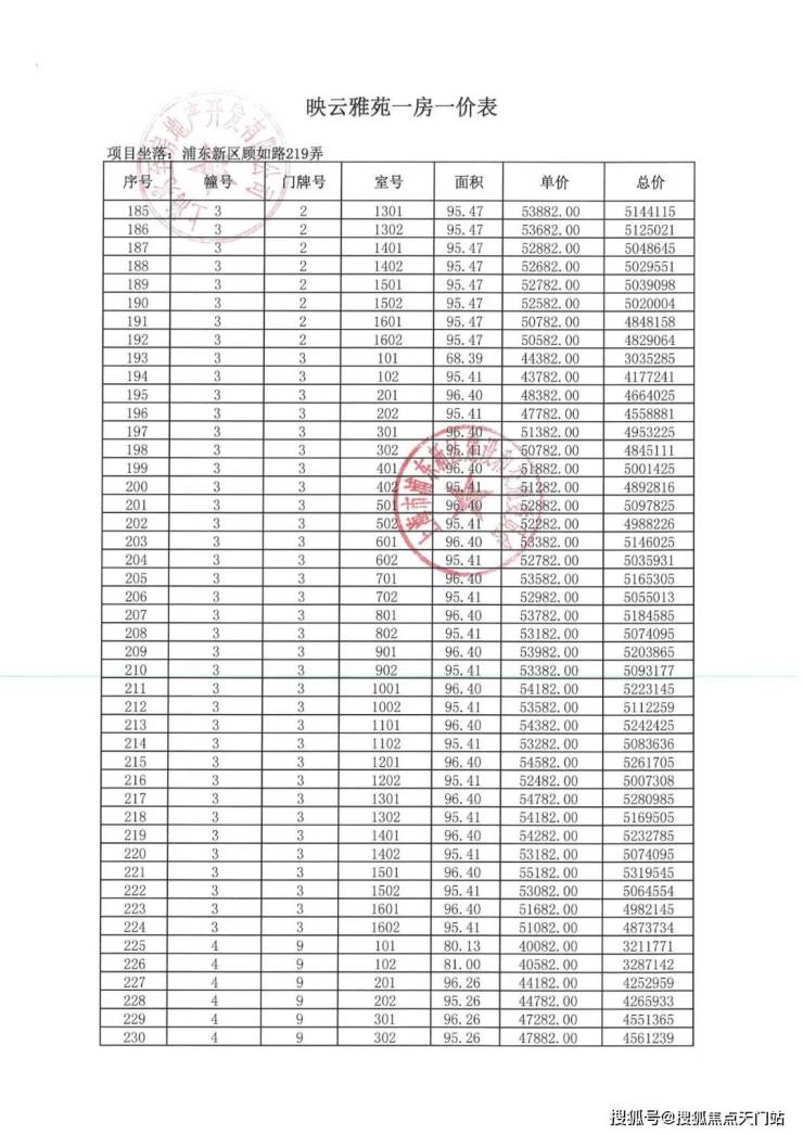 项目一房一价表▼