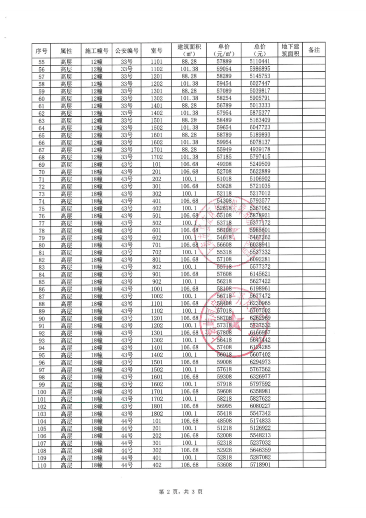 一房一价表: