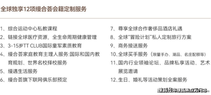 包括但不局限于以下服务:儿童接送服务、酒店式入户保洁、43项免费日常维修、私人定制全球旅游方案、宠物托管、车辆养护代检等。(增值服务部分需在基础物业费的基础上另外收取费用,本宣传出现的增值服务细则仅供参考,具体以增值服务合同约定为准)