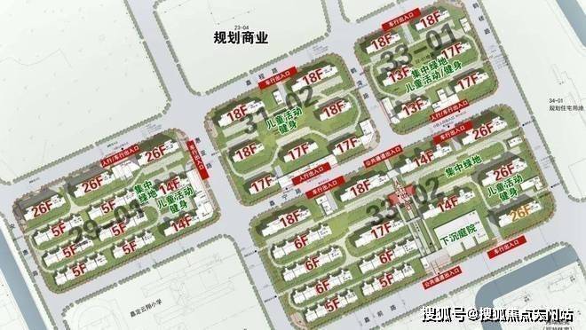 项目有4个子地块组成,虽然容积率不低,但是非常难得的是,绿化率非常高,在每个小地块几乎都有大面积的绿地规划和儿童、健身空间,小编将各个小版块分别切割出来,为大家展示一下: