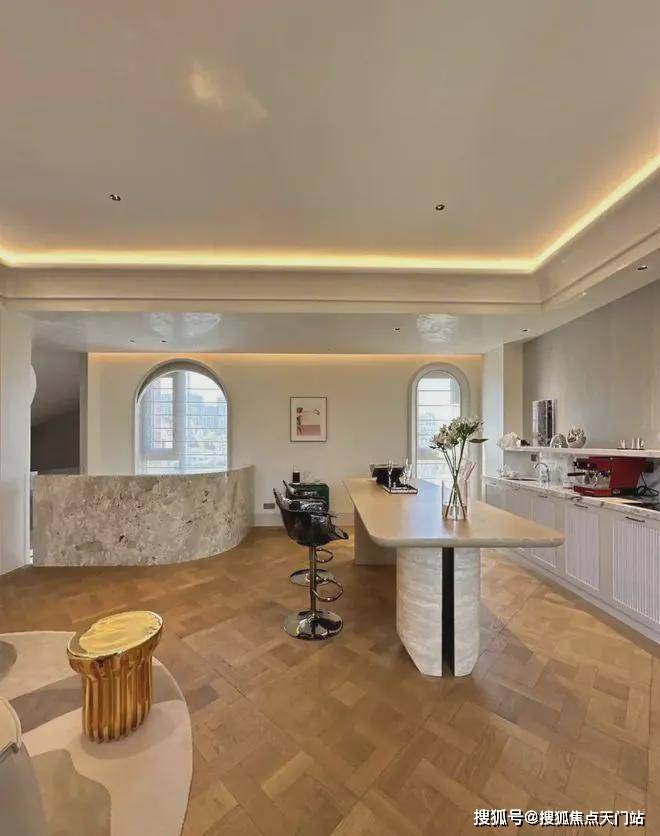 户内楼面高度不一致,错开之处有楼梯联系。但没有完全分为两层。(适合大面积住宅,小户型会显得局促)