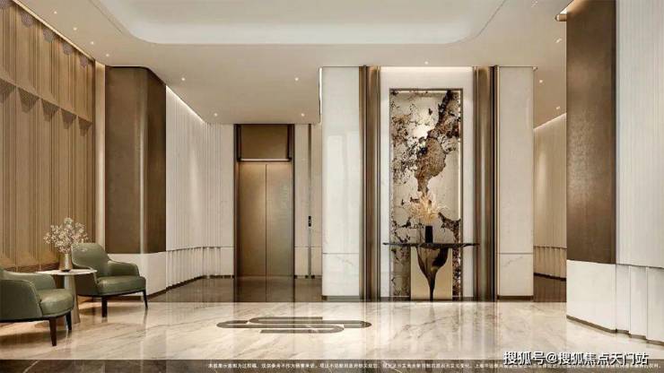 项目一楼设计 星级入户大堂,挑高穹顶之下,天然石材与金属线条交织出当代艺术馆般的恢弘气度。这里不仅是归家的第一重仪仗,更是名流圈层的 社交艺术厅,精致的皮革沙发休憩区,也能成为您会客洽谈的隐贵主场。
