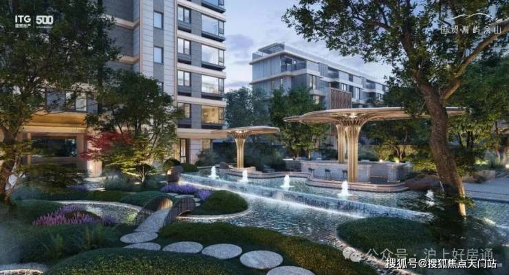 社区的配套上: 项目 拥有一座约1600㎡度假酒店中岛 ,整个中岛内拥有海岛风层叠水池、社交客厅以及庭院架空层,共鸣多样化松弛生活场景。