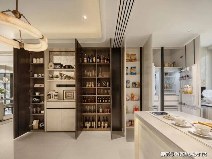 厨房用的是方太的旗舰套装,集成烹饪中心和净洗中心,连母婴净水机都有,解决了中式厨房的油烟和清洁问题。
