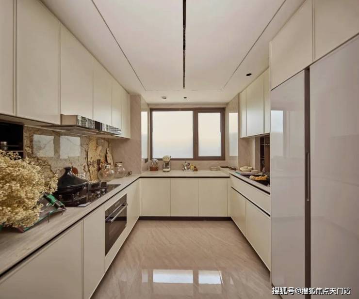 b.U 型厨房更创新采用 上海首个高低台设计,既解决下厨弯腰痛点,三面台均分还能拓展操作空间。