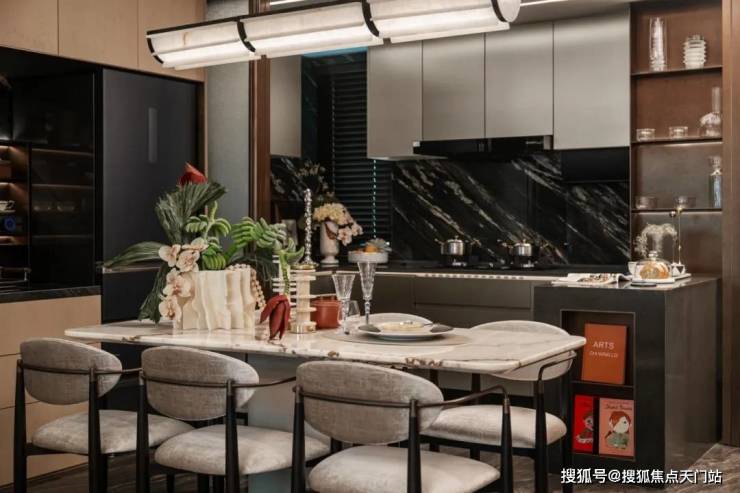 另外一方面,客卫的移位释放了大量的空间, 放大了翎翠滨江餐厅、厨房,尺度感、通透性极强,并且做到了几乎0空间浪费。