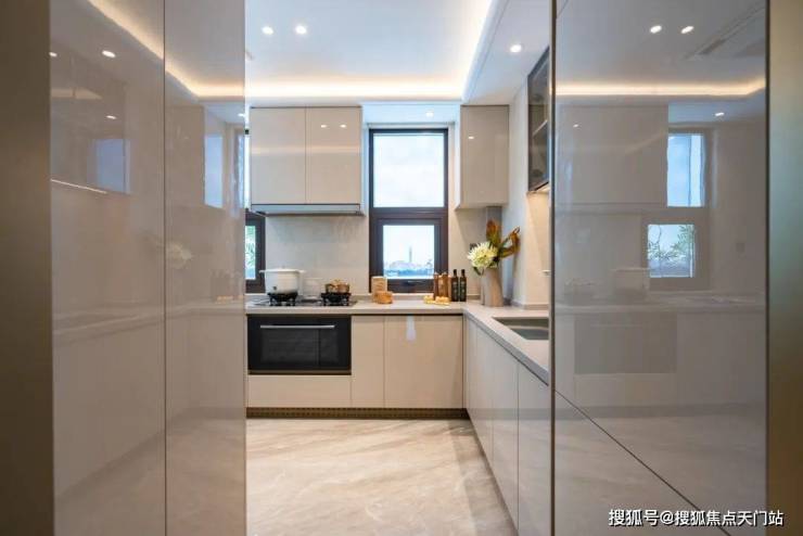项目厨房使用 方太的灶蒸烤一体机、吸油烟机三件套交付,更有 弗兰卡的水槽、龙头,定制橱柜, 诺贝尔的地面、墙面,石英石台面等 。