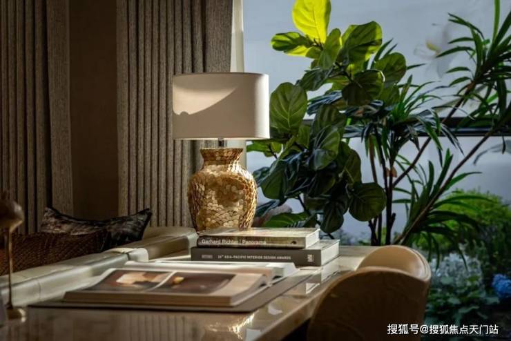 样板间不是传统“金碧辉煌”的,而是真正用艺术品味去打造。比如弧线,是建筑语言中极具表现力的元素,在室内贯穿始终。客厅吊顶一眼匠心,多层次处理,辅以弧形工艺,非常优雅。