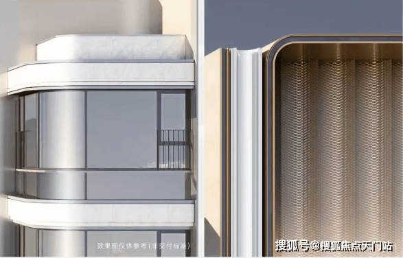 全球先锋地标皆以科幻艺术感的弧形曲线设计,无论弧形鎏金塔冠、弧形辊轮铝板、弧形转角玻璃,【大华·静安年华】建筑采用曲线弧形设计弧形,亦致敬了吴同文住宅的流线之弧