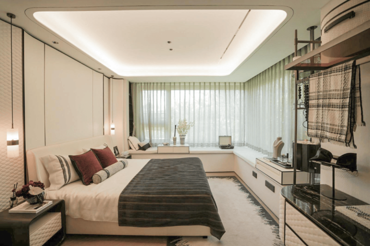 建面约139㎡4房户型,套数不多,但产品力绝对惊艳。四开间朝南,约15.05米宽的南向横厅、约1.6米进深的奢阔阳台,中环顶级享受的既视感。主卧约4.45米的进深,约4米大面宽(含飘窗),配合270°转角飘窗,是目前市面上产品力高配的户型之一,值得一冲!