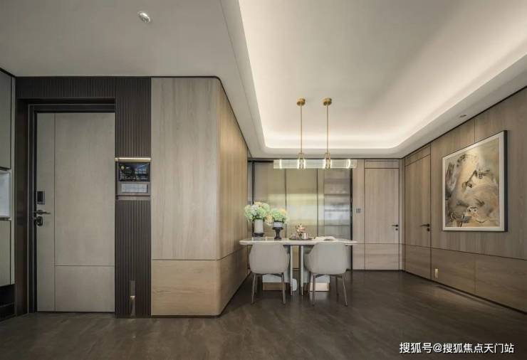 如果不仔细观察,你能发现这面墙后居然隐藏了三个房间吗?为了室内的整体美观,项目把三个房间门嵌入了背景墙之中,做工严丝合缝,墙面与门浑然一体,美观的同时还兼顾了隐私性!