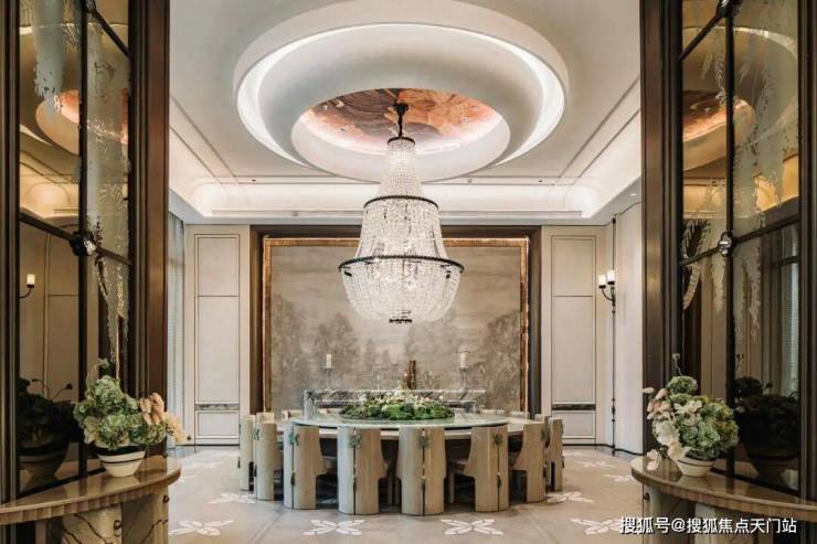进门之后,恍若走进一幅立体绽放的画卷。地面采用了石材拼花,纹理如行云流水般舒展,在光影交错间勾勒出 低调的奢华。