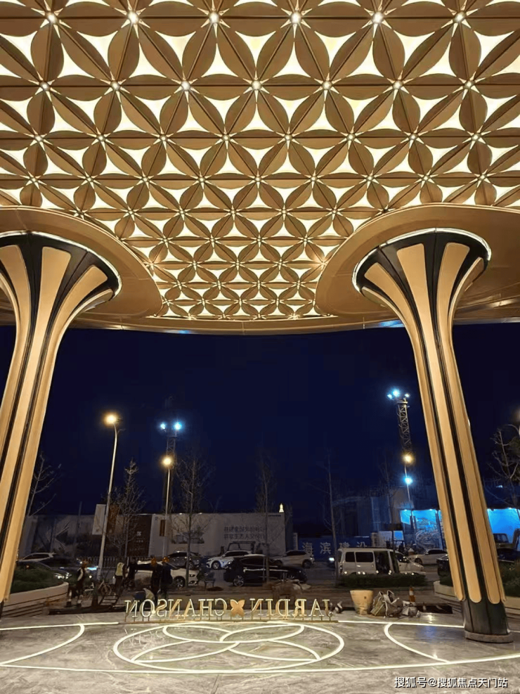 门头顶部的500多片镂空透光铝板雕花花瓣,皆由项目LOGO精琢演化而来。当阳光倾泻,光与影在镂空间起舞,在地面织就一幅不断变幻的自然画作。这是3000万重金雕琢的细节,更是对品质的无声承诺。