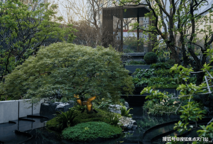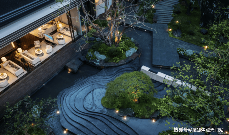 围绕约300㎡的镜面水展开,利用高差,呈现一处藏于下沉花园的东方隐奢秘境