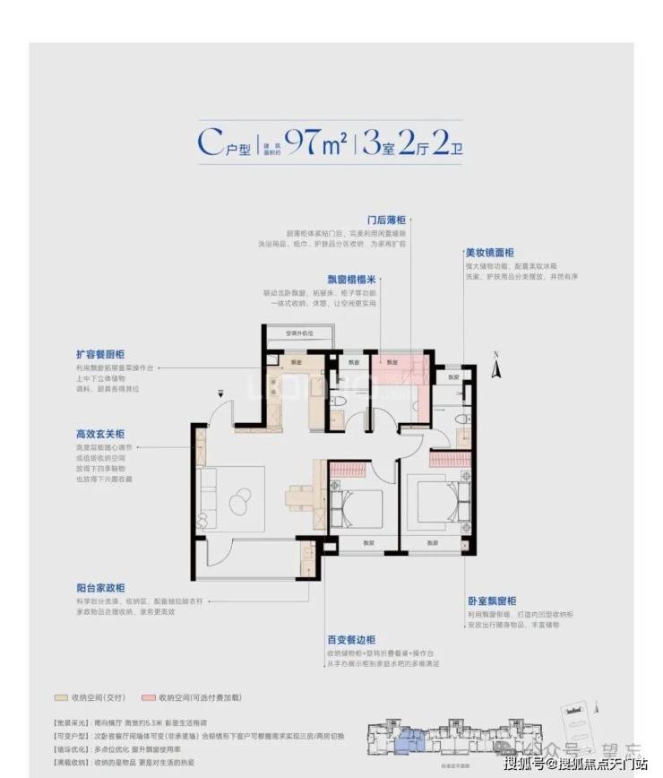【建面97㎡3居】359-439万,3室2厅2卫, 南朝向,楼栋分布于1幢