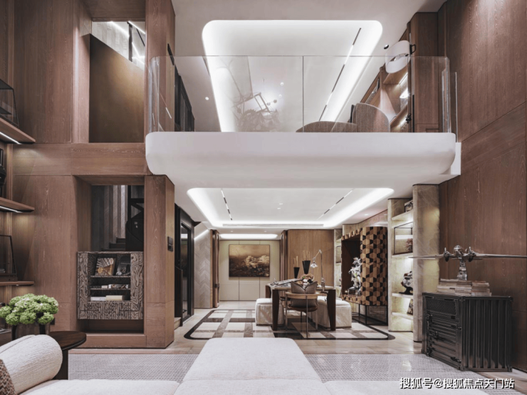 地下创意工坊: 约5.4米层高,约50m²复合空间,可随心打造为绅士俱乐部、女主人的烘焙区或家庭影音室。垂直分区设计让功能与意境完美统一。