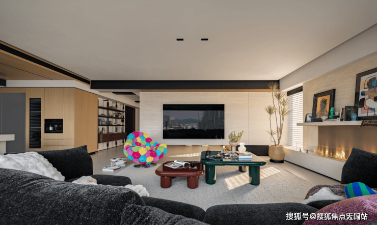 客厅色彩与光影交织,犹如复调的交响,层次分明,喧嚣与静谧并存,矛盾却不冲突。色块如同低语的音符,在空中编织,形成一种看似无序的秩序。售楼处电话 400-118-3159